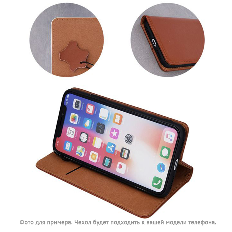 Чехол-книжка защищает телефон со всех сторон. Гелевый каркас амортизирует при ударах и падениях. Обложка из натуральной кожей с аккуратной строчкой выглядит стильно и солидно. А прикасаться к ней – одно удовольствие. Возьмите чехол в руки и убедитесь сами. Вам не захочется с ним расставаться.
