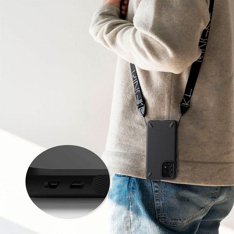 Приятная мелочь: в чехле предусмотрено отверстие для крепления шнурка. Если вы любите носить телефон на руке или хотите зацепить на телефон брелок, можете легко это сделать.