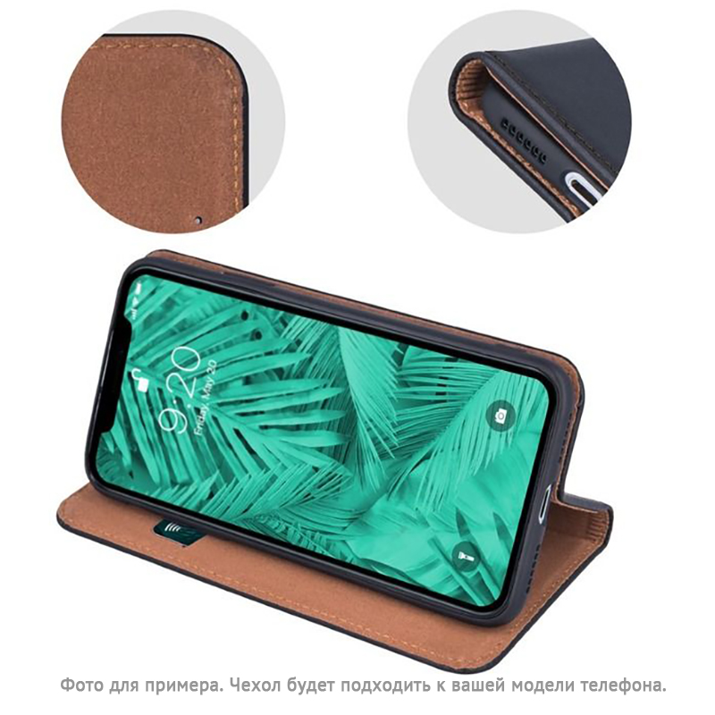 Чехол-книжка защищает телефон со всех сторон. Гелевый каркас амортизирует при ударах и падениях. Обложка из натуральной кожей с аккуратной строчкой выглядит стильно и солидно. А прикасаться к ней – одно удовольствие. Возьмите чехол в руки и убедитесь сами. Вам не захочется с ним расставаться.