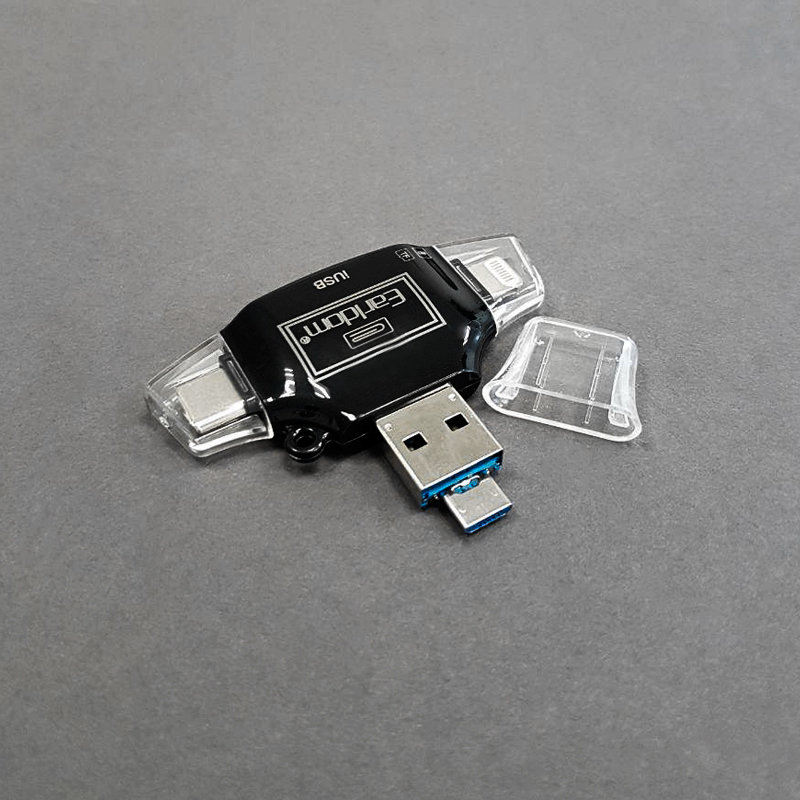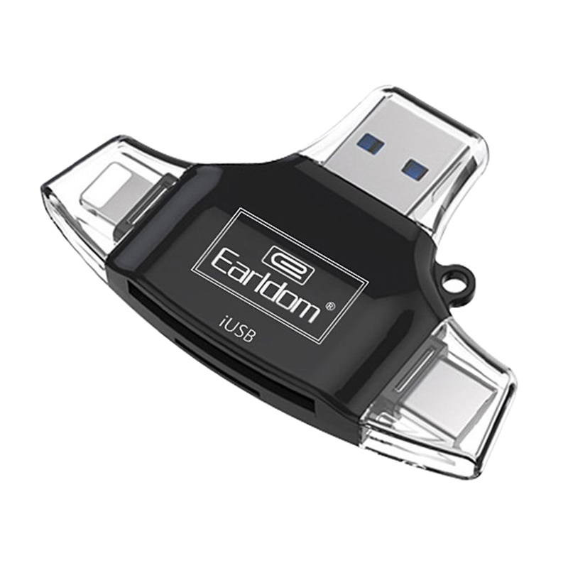 С помощью картридера Earldom, конечно. С ним вам не понадобится пользоваться беспроводной связью, облаком или кабелем. Просто вставьте карту памяти и воспользуйтесь одним из коннекторов для подключения к телефону. Проще не бывает.