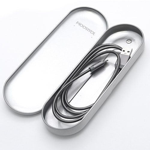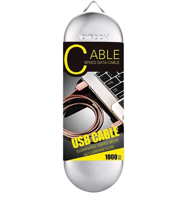 Кабель запакован в металлическую коробку. Она смотрится дорого и солидно. К тому же, коробку можно использовать как пенал. Если выбираете нужный и недорогой подарок, кабель Joyroom - отличный вариант.