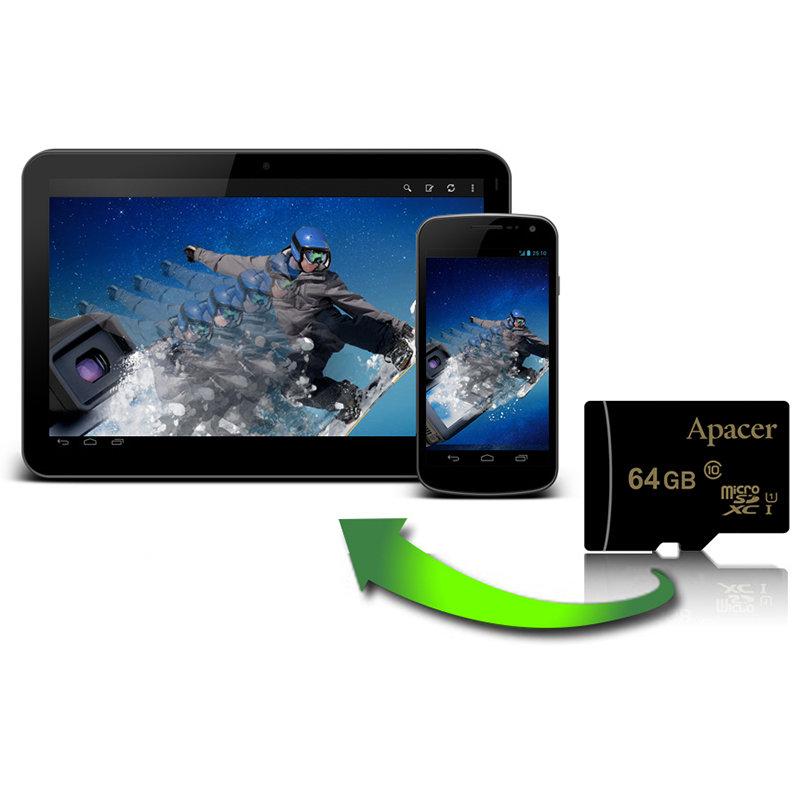 Карта памяти Apacer AP64GMCSX10U1-R MicroSDXC 64Gb UHS-I U1 V10 45 Мб/с с адаптером SD