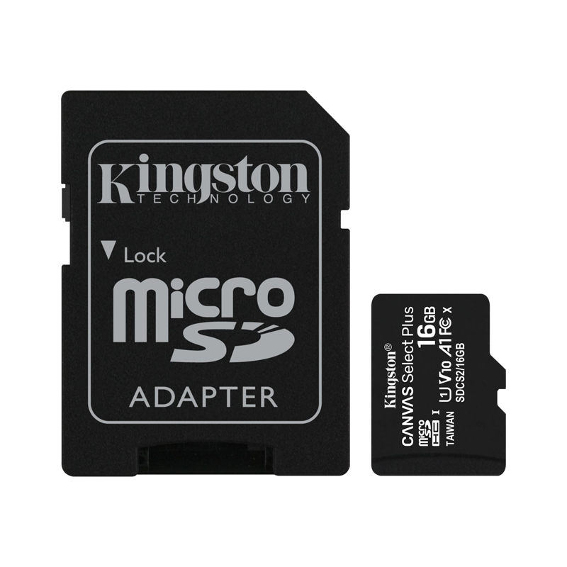Карта памяти Kingston Canvas Select Plus MicroSDHC 16Gb UHS-I U1 V10 100 Мб/с с адаптером SD