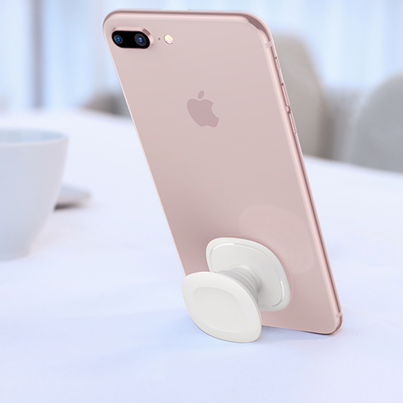 Если положить телефон на стол и опереть на попсокет, он превратится в подставку. В таком положении удобно смотреть фотографии и видео, общаться по Skype.