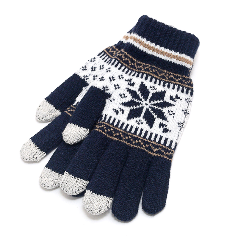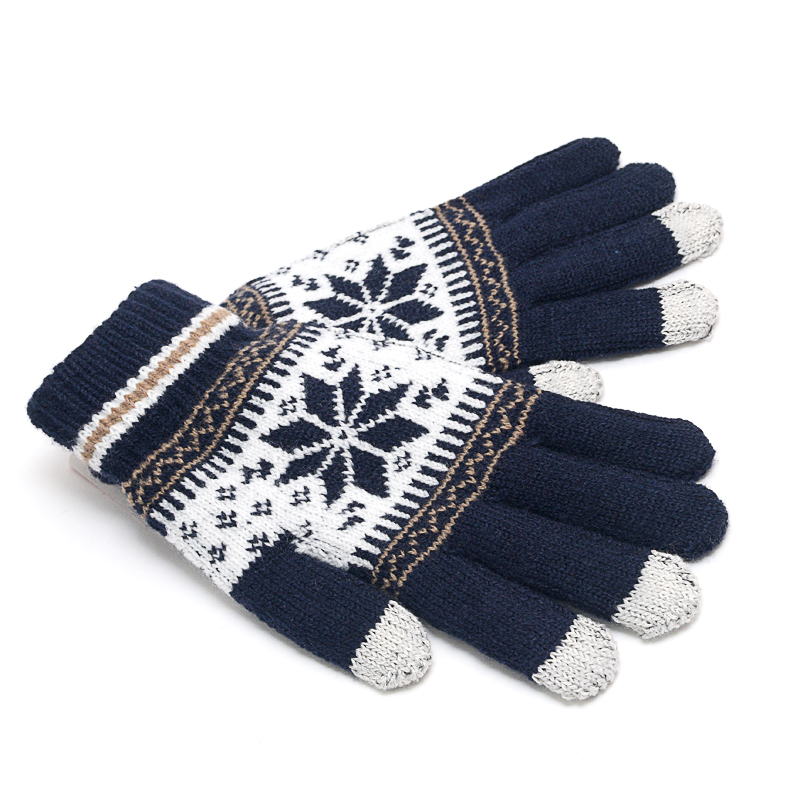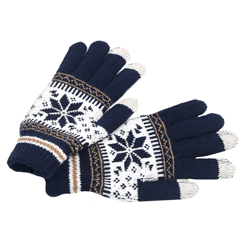 Перчатки трикотажные для емкостных дисплеев Greengo (Польша) N-05 узор снежинки темно-синие