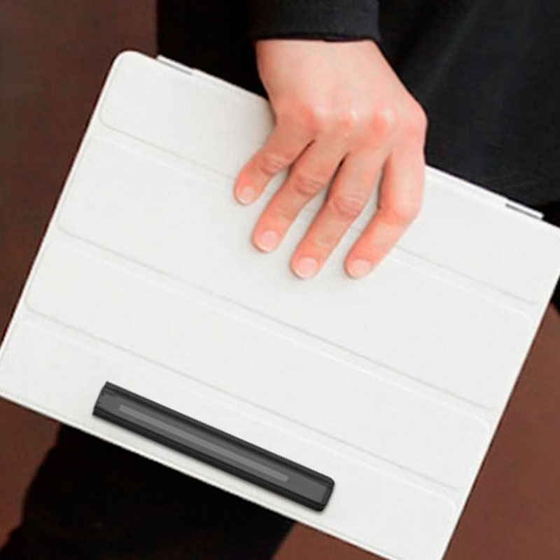 В комплекте идет футляр для хранения и переноски. В нем стилус сидит как влитой, поэтому едва ли потеряется. А чтобы футляр было удобнее носить с собой, его можно приклеить на чехол или крышку вашего гаджета с помощью клеевой полосы 3М.