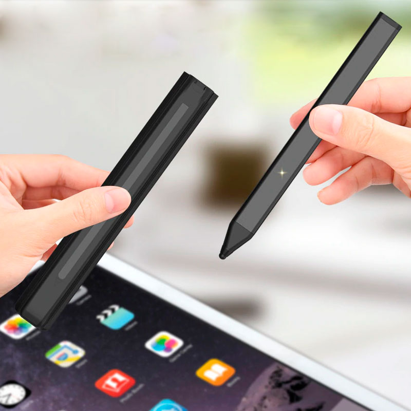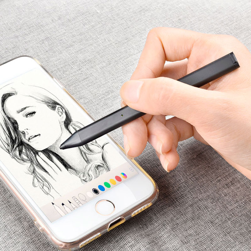 Стилус WiWU – активный. Для подачи электричества на наконечник нажмите кнопку питания и прикоснитесь к экрану. Толщина наконечника – всего 1.45 мм